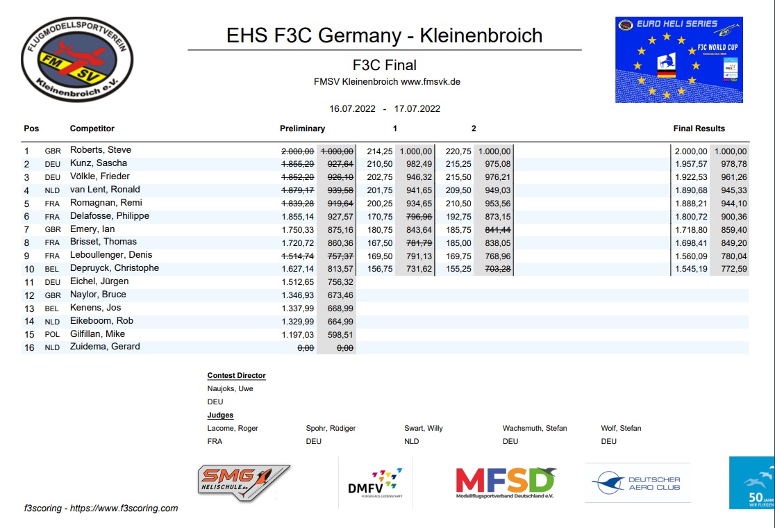 If you would like more information about F3C, Events, and getting started with competition flying or organising a World Cup - Please feel free to take a look at the Euro Heli Series website.